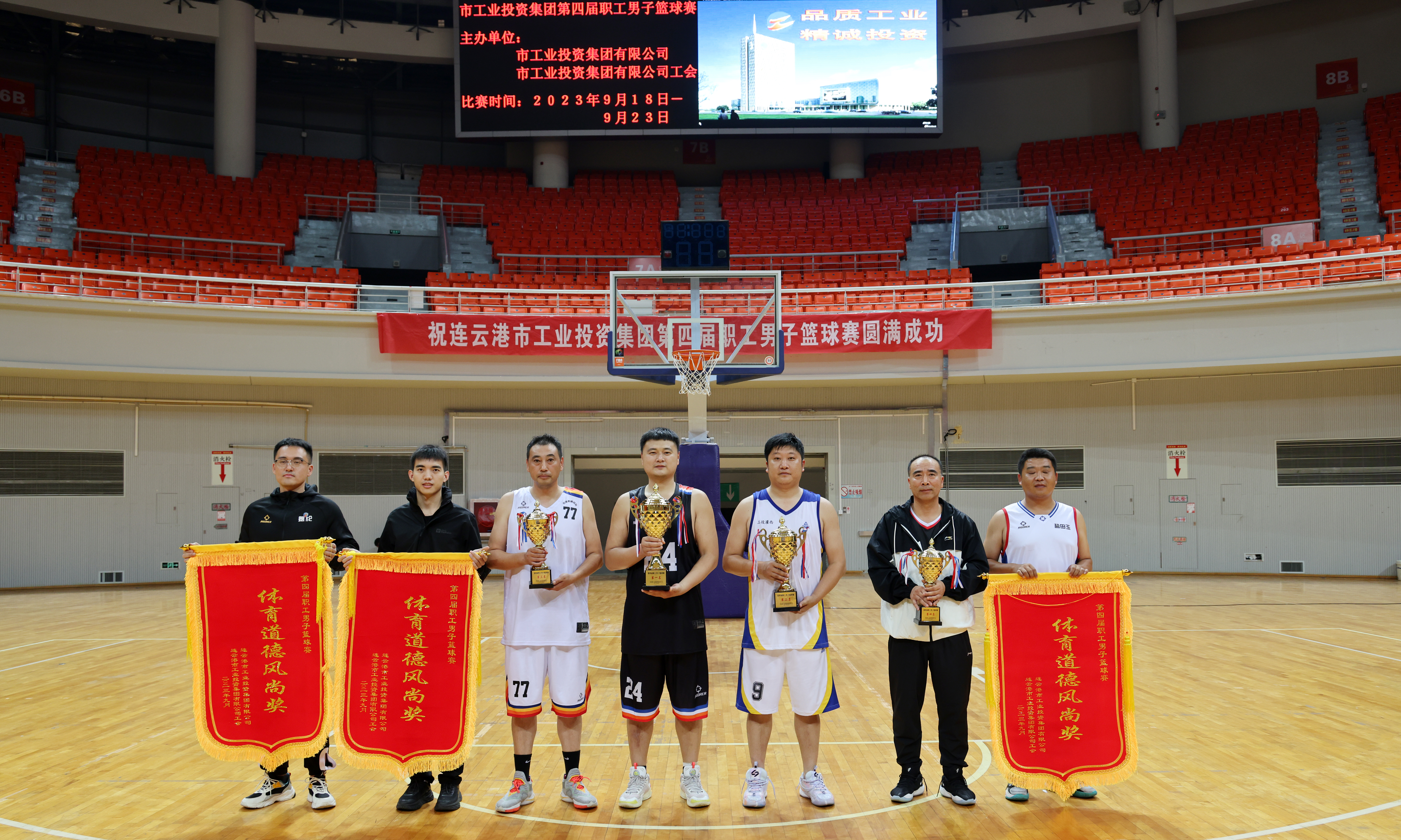 在市體育中心籃球館進行的前四名比賽中,徐圩投資公司代表隊、灌西投資公司代表隊、利海氯堿公司聯(lián)隊和臺北投資公司代表隊經(jīng)過一天的爭奪,分獲前四名。供電公司、青口投資公司、氨綸公司三支代表隊獲體育道德風尚獎。集團公司領(lǐng)導戴鴻鳴、劉承志出席閉幕式,并為獲獎代表隊頒獎。