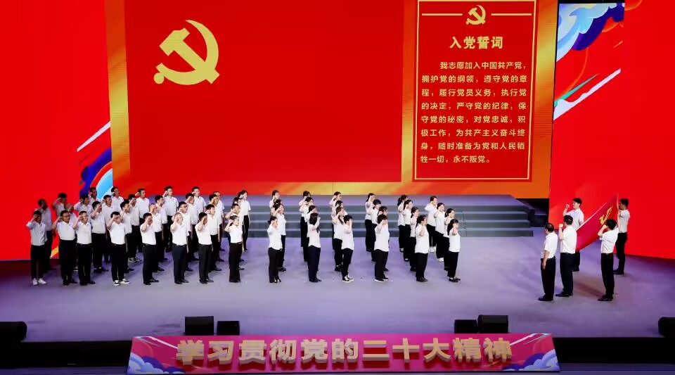 活動(dòng)中還組織了新黨員集體宣誓,對(duì)集團(tuán)先進(jìn)典型事跡進(jìn)行展播。慶?;顒?dòng)在全場(chǎng)合唱《沒有共產(chǎn)黨就沒有新中國》的歌聲中落下帷幕。