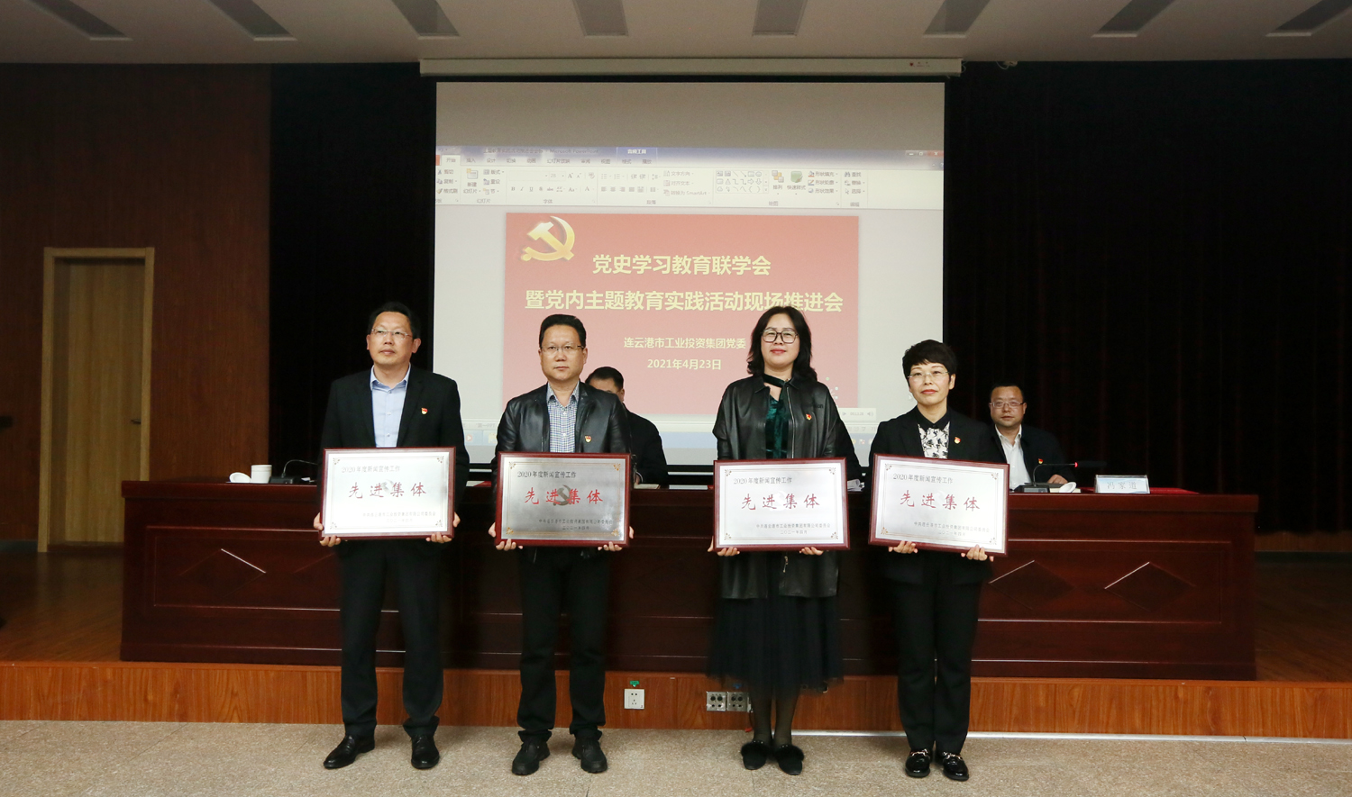 下半時,對2020年度新聞宣傳工作先進集體、先進個人和《連云港工投》好新聞進行了表彰,安排部署近期黨史學習教育、基層黨建重點工作和“七一”慶祝活動等相關事項,與會人員還現場觀摩了氨綸公司黨建品牌“三三工程”特色做法。