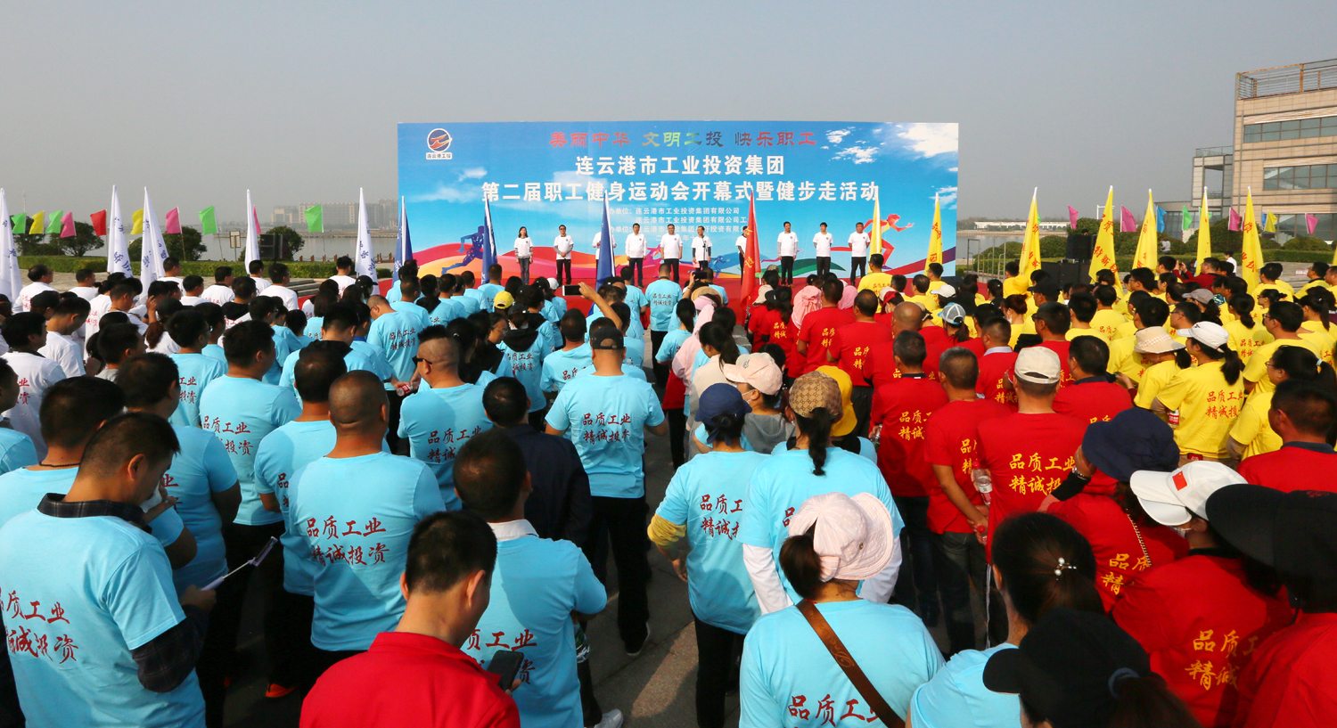 金秋十月,丹桂飄香。10月24日上午,美麗的徐圩新區(qū)云湖廣場(chǎng)彩旗招展,歌聲飛揚(yáng),為慶祝中華人民共和國(guó)成立70周年,豐富職工業(yè)余文化生活,由集團(tuán)公司、集團(tuán)公司工會(huì)主辦,徐圩投資公司承辦的集團(tuán)第二屆職工健身運(yùn)動(dòng)會(huì)開幕式暨健步走活動(dòng)在這里隆重舉行。集團(tuán)公司黨委書記、董事長(zhǎng)楊龍宣布第二屆職工健身運(yùn)動(dòng)會(huì)開幕,并為健步走活動(dòng)發(fā)令??偨?jīng)理胡建明致開幕詞。工會(huì)主席劉承志主持開幕式。 本次運(yùn)動(dòng)會(huì)圍繞“美麗中華·文明工投·快樂職工”活動(dòng)主題,來自全公司各條戰(zhàn)線的17支代表隊(duì)1200多人次的運(yùn)動(dòng)員參加拔河、跳繩、乒乓球、健步走等項(xiàng)目的角逐。他們以勇奪第一、超越自我的競(jìng)賽精神和攜手奮進(jìn)、合力拼搏的競(jìng)賽風(fēng)尚,充分展示工投人追求卓越、共建和諧的優(yōu)秀精神風(fēng)貌。本次運(yùn)動(dòng)會(huì)將對(duì)個(gè)人單項(xiàng)比賽前六名、集體項(xiàng)目比賽前三名及道德風(fēng)尚獎(jiǎng)獲得者給予表彰。