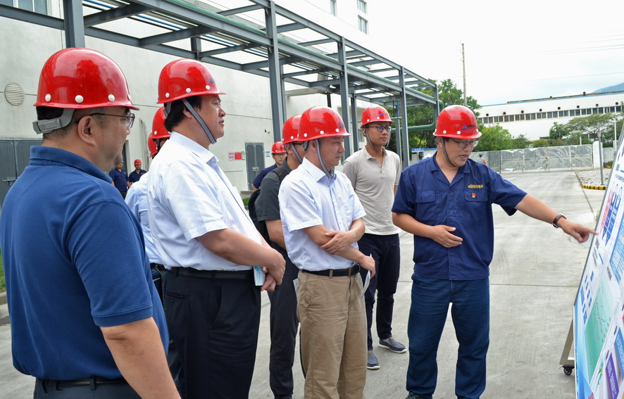 8月12日,省統(tǒng)計局副局長周國強率省政府能源消耗“雙控”目標(biāo)現(xiàn)場考核組到氨綸公司調(diào)研,副市長徐家保陪同調(diào)研,市工信局局長、黨組書記董作村,集團公司董事長、黨委書記楊龍參與陪同??己私M一行深入氨綸公司分布式能源、八期生產(chǎn)現(xiàn)場、自動包裝線等一線生產(chǎn)區(qū),詳細了解公司十三五期間“三步走”能源規(guī)劃、能源管理體系建設(shè)、節(jié)能降耗工作等情況。周國強對氨綸公司在行業(yè)內(nèi)首創(chuàng)利用分布式能源的做法表示贊賞,并鼓勵公司要進一步完善能源管理體系建設(shè),堅持走綠色發(fā)展道路,持續(xù)降低單位產(chǎn)品能耗。