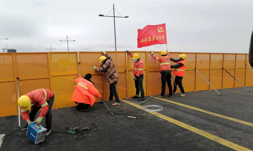 安裝加固步步到位?!敖裉焓姓趰?/span>9人。”17號一大早,市政經(jīng)理高峰就準(zhǔn)時在公司防疫管理群里報告人數(shù)??墒谴藭r這崗位卻設(shè)在狂風(fēng)凌洌、無遮無擋的海濱大道上。肆虐的狂風(fēng)吹倒了許多防護欄,從清晨開始,高峰就帶領(lǐng)市政突擊隊沿著合作路、海濱大道等八個路段一路巡查一路搶修。面對狼藉的現(xiàn)場,高峰沉著冷靜,有條不紊地帶著大家用力地扶起扶正,再加樁固定。施工現(xiàn)場,風(fēng)聲伴著加油的號聲、汗水伴著有節(jié)奏地敲擊聲,這場景,不正是一幅感人的“錚錚鐵骨鑄堅壁”的動人畫卷嗎?自3月5日疫情襲來,市政突擊隊就馬不停蹄地奮戰(zhàn)在新區(qū)的各個角落。施工期間,高峰他們白天黑夜地連軸轉(zhuǎn),中午來不及休息便蹲在路邊吃快餐,為了搶工期,有時竟加班到深夜12點。短短的10天,他們在做好其他市政服務(wù)工作的同時,已經(jīng)先后安裝完成了2000多米的道路圍擋,讓病疫“無路可逃”。