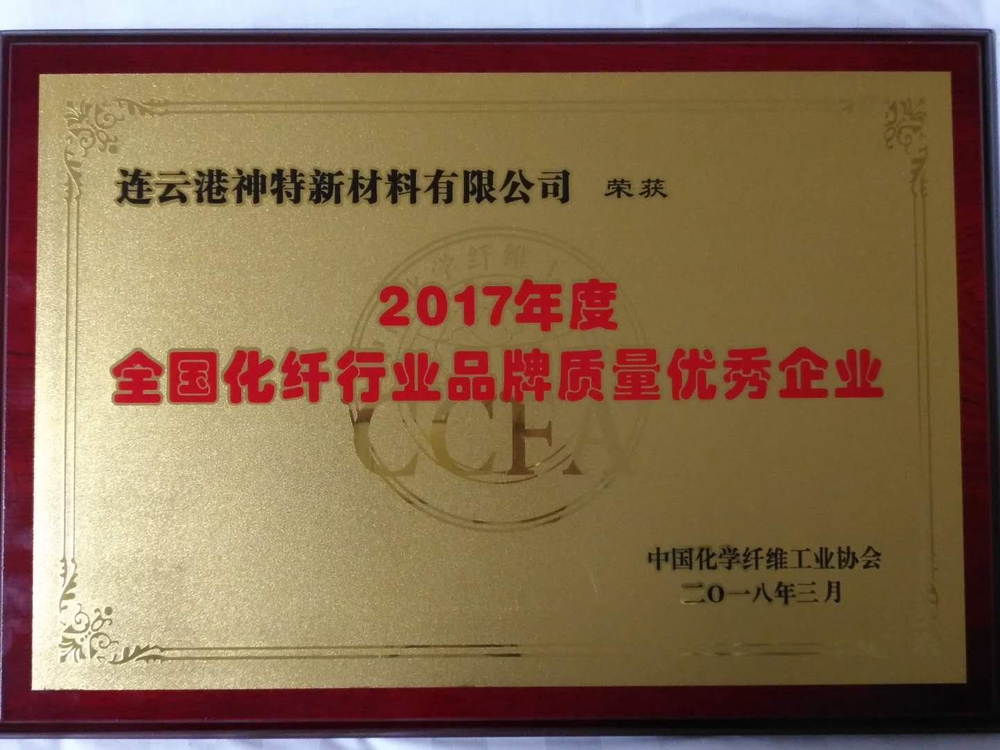 3月13-14日,由中國化學(xué)纖維工業(yè)協(xié)會主辦的“中國化纖行業(yè)高質(zhì)量發(fā)展論壇暨第四次理事會擴大會議”在上海召開。會上,神特公司榮獲“2017年度全國化纖行業(yè)品牌質(zhì)量優(yōu)秀企業(yè)”稱號。