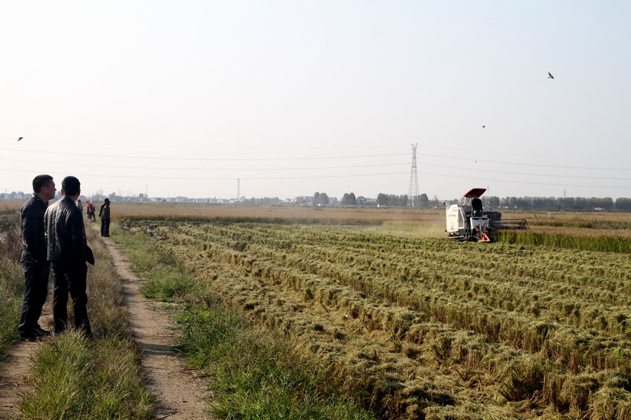 青口萬畝連片水稻開鐮收割