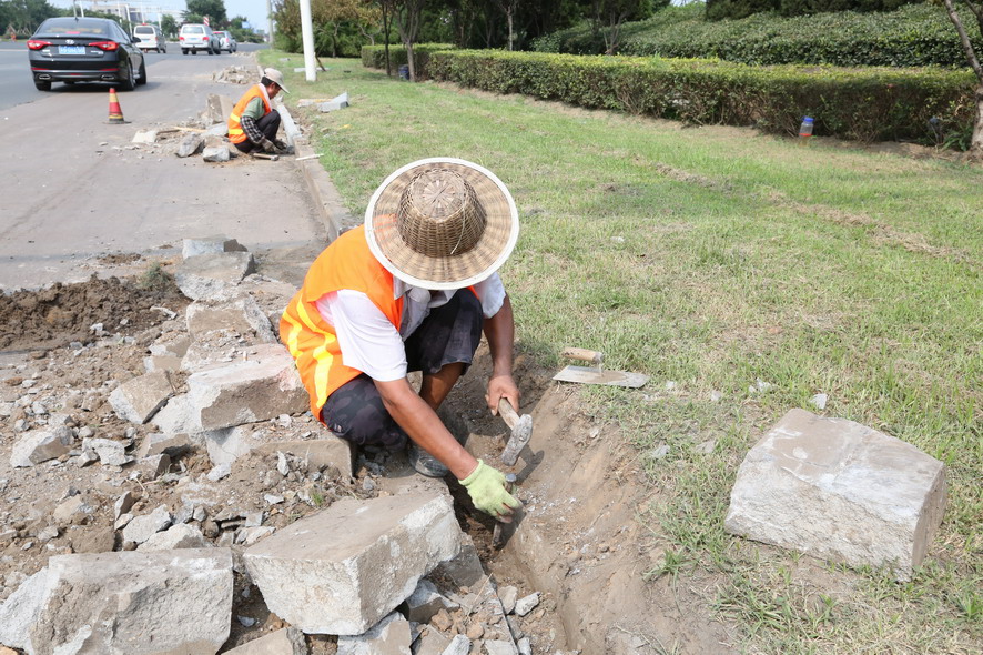 位于連云港東站附近的新光路,是開發(fā)區(qū)境內(nèi)的一條主要運輸?shù)缆?,?jīng)常有重型卡車經(jīng)過,每天川流不息的車輛不僅給道路增加了運載負荷,也使得道路兩旁的路牙石、人行道磚等受碾壓、撞擊、剮蹭等因素影響,破損非常嚴重。為了加快工程進度,降低人工成本,工程項目部在該路段采取機械施工的方式,很大程度上的提高了項目進度。在項目開展過程中,工程項目部的人員也遇到了許多的困難,新光路由于地處火車站附近,平常車流量大,在施工過程中要注意對來往車輛進行避讓;另外,由于該路段臨近新光小區(qū)、瀾庭觀邸等住宅區(qū),早晚上下班的居民也限制了施工時間短。雖然面臨種種困難,盛達市政公司的施工人員沒有埋怨,而是想方設法去克服。自8月24日開工以來,截止目前,總長近6000米路段內(nèi)的路牙石以及人行道磚的清理工作已經(jīng)全部完成,下階段,工程項目部還將安排人員進行新路牙石與人行道磚的更換工作,并將開展附近其他道路的修復工作,確保將“創(chuàng)衛(wèi)”工作的開展落實到實處。