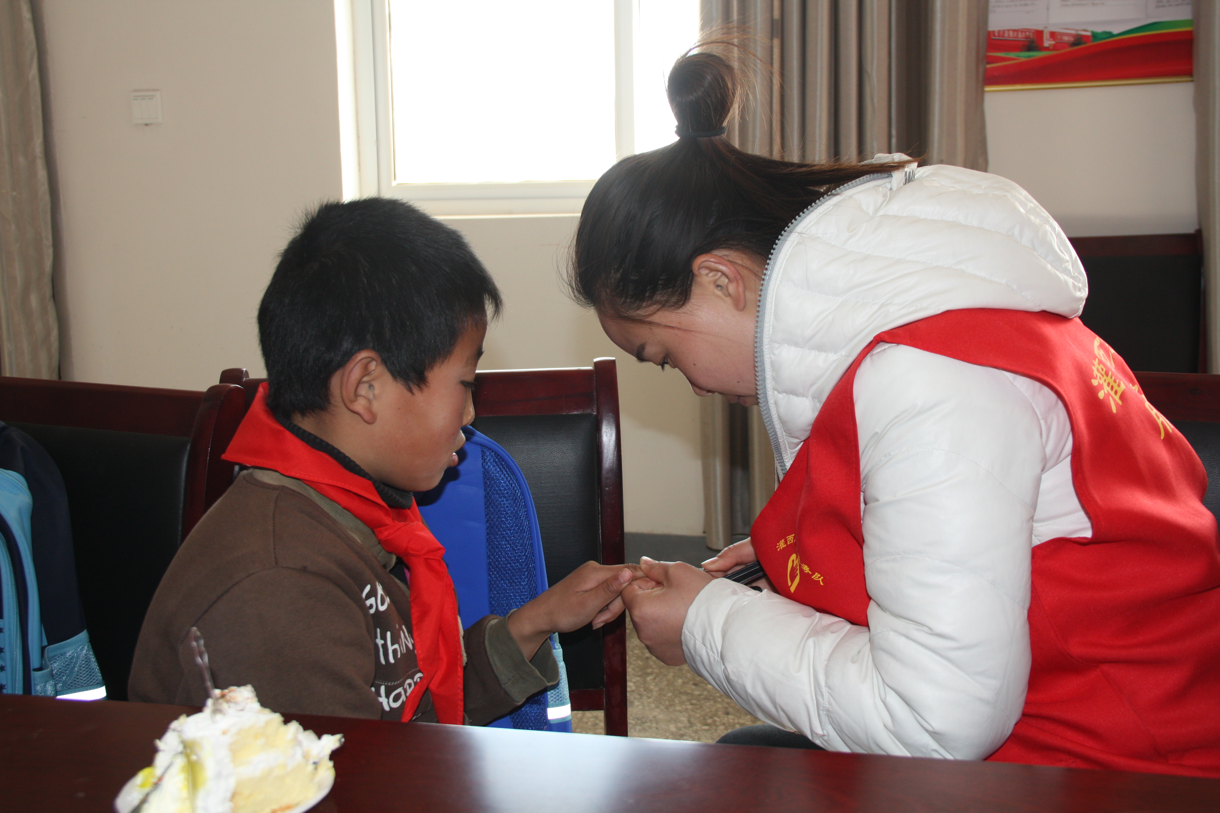 同時,志愿者們還把準(zhǔn)備好的書包文具等學(xué)習(xí)用品送到孩子們的手中,孩子們?yōu)橹驹刚吲浯骷t領(lǐng)巾,并一一結(jié)對合影留戀,讓這初春多了一絲溫暖。通過本次活動,讓困難家庭兒童收獲溫暖的同時懂得感恩,并將這份愛心繼續(xù)傳遞下去,助力他們健康快樂的成長。