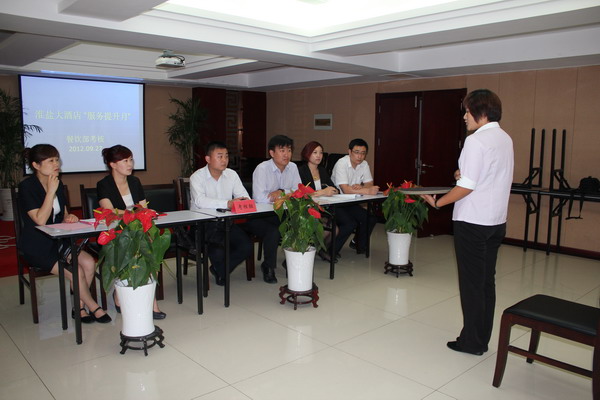 七、八月份的旺季大客情剛過,該酒店伏運余總經(jīng)理就召開經(jīng)營管理會議,籌劃在9-12月期間,分別開展“服務(wù)提升月”、“出品質(zhì)量月”、“管理提升月”、“安全生產(chǎn)月”等4個“主題月”活動。要求各部門根據(jù)每月的主題,組織開展活動,進一步提高酒店各個方面的工作和接待服務(wù)質(zhì)量,為明年乃至今后的發(fā)展打下堅實基礎(chǔ)。該酒店制定了主題月活動的詳細工作計劃,以培訓(xùn)為龍頭,帶動全方面服務(wù)提升。在九月份的“服務(wù)提升月”中,部門經(jīng)理及以上管理層直接授課,同時邀請了神州賓館等高星級酒店的管理人員前來授課,共培訓(xùn)120個課時、1000人次。培訓(xùn)真正使員工加強了業(yè)務(wù)知識、提高了服務(wù)意識、開拓了工作思路。(楊帆)