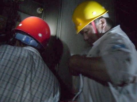 圖為維護(hù)人員冒著高溫在夜間搶修故障