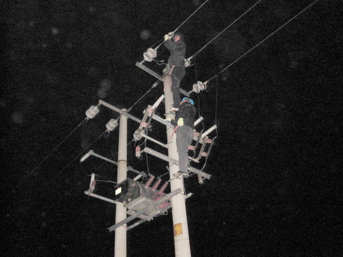時(shí)下正是養(yǎng)殖揚(yáng)水高峰期。3月6日晚20:37分,值班人員接到用戶(hù)電話反映:黃下線電壓不穩(wěn),變壓器及配電箱聲音異常,并發(fā)現(xiàn)高壓線路有火光現(xiàn)象,值班人員趙勇及時(shí)到現(xiàn)場(chǎng)。經(jīng)查看,是黃下線26號(hào)桿柱上斷路器,A相銅鋁樁頭養(yǎng)化接融不良所致。原因找到后,從21:05分組織人員進(jìn)行搶修,搶修人員克服夜間天黑等諸多困難,21:56分及時(shí)恢復(fù)供電,保證了養(yǎng)殖搶水。(宋中文 李衛(wèi)田)