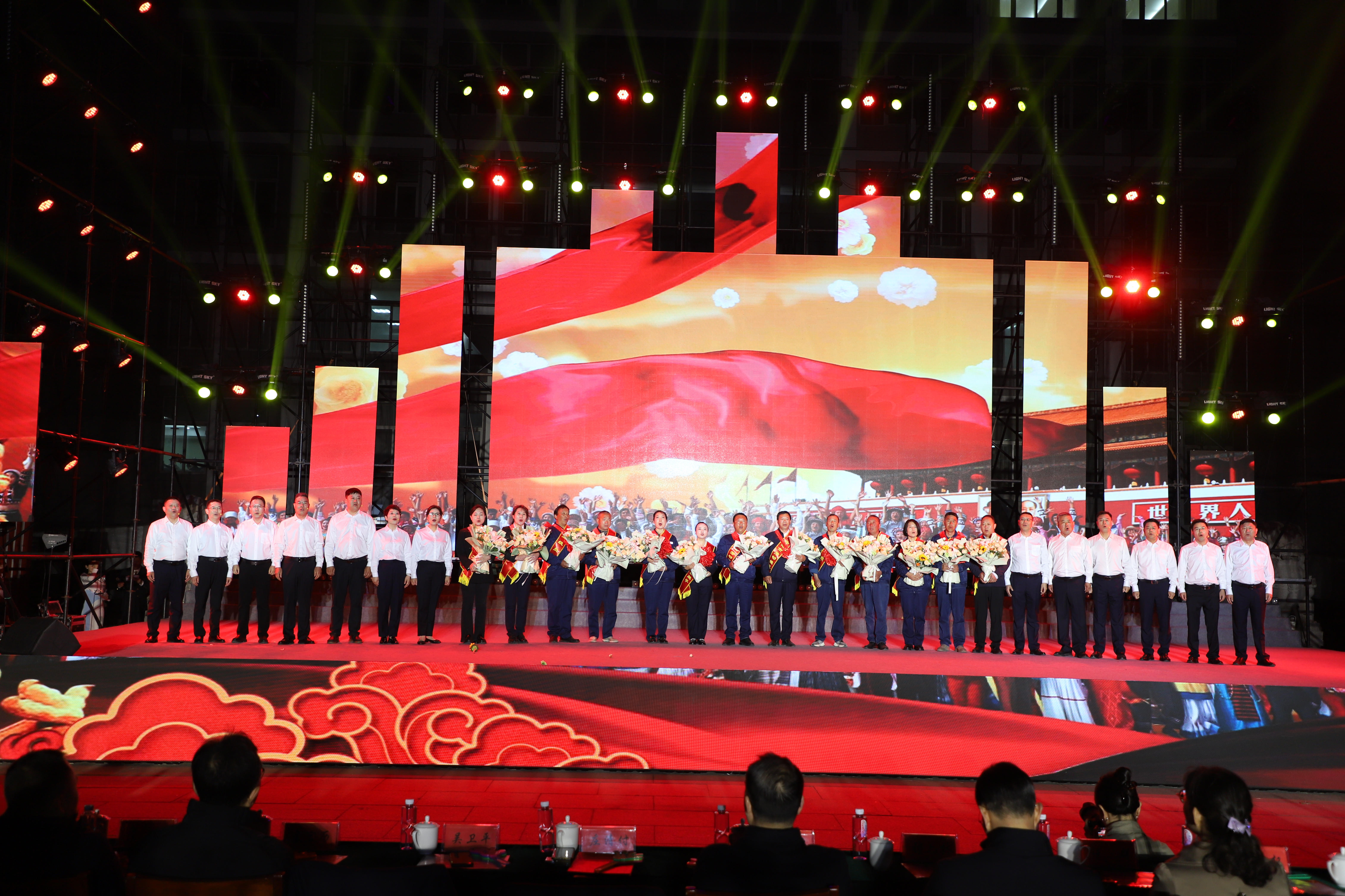 本次文藝匯演有歌舞、三句半、音樂(lè)快板、朗誦、相聲、歌曲串燒、歌曲獨(dú)唱、大合唱等豐富多彩的節(jié)目,其表演形式和精彩內(nèi)容引人入勝,火熱絢麗的舞臺(tái)、貼近職工生活的節(jié)目?jī)?nèi)容、公司熱火朝天的奮斗場(chǎng)景,呈現(xiàn)了灌西人對(duì)企業(yè)的深沉情感和對(duì)工作生活的激情與熱愛(ài)。演出在開(kāi)場(chǎng)群舞《盛世歡歌》拉開(kāi)帷幕,整個(gè)演出分為“禮贊·勞動(dòng)最光榮”“鑄魂·勞動(dòng)最崇高”“閃耀·勞動(dòng)最美麗”“輝煌·勞動(dòng)最偉大”四個(gè)篇章,三句半《凝心聚力譜新篇》、舞蹈《沸騰的鹽灘》、音樂(lè)快板《后發(fā)先至看工投》等都是灌西職工自編自演的節(jié)目,充分展現(xiàn)了灌西員工朝氣蓬勃、奮發(fā)向上的精神面貌,以及對(duì)公司創(chuàng)新發(fā)展、職工幸福安康的美好祝愿。灌西公司黨委書(shū)記、董事長(zhǎng)孫政權(quán)和金航公司黨總支書(shū)記、總經(jīng)理莊清付分別登臺(tái)獻(xiàn)藝,為大家表演了歌曲獨(dú)唱《我是一條小河》和配樂(lè)詩(shī)朗誦《我驕傲,我是中國(guó)人》,得到職工觀眾們熱烈的掌聲。小合唱《咱們工人有力量》、大合唱《新時(shí)代新家園》《沒(méi)有共產(chǎn)黨就沒(méi)有新中國(guó)》等節(jié)目把現(xiàn)場(chǎng)的氣氛推向了高潮,有力展現(xiàn)了全公司職工們激情澎湃、昂揚(yáng)奮進(jìn)的精神面貌。在文藝演出中間,還分別對(duì)公司各條戰(zhàn)線的勞模先進(jìn)代表、先進(jìn)單位、部門和班組進(jìn)行了表彰。(西宣)