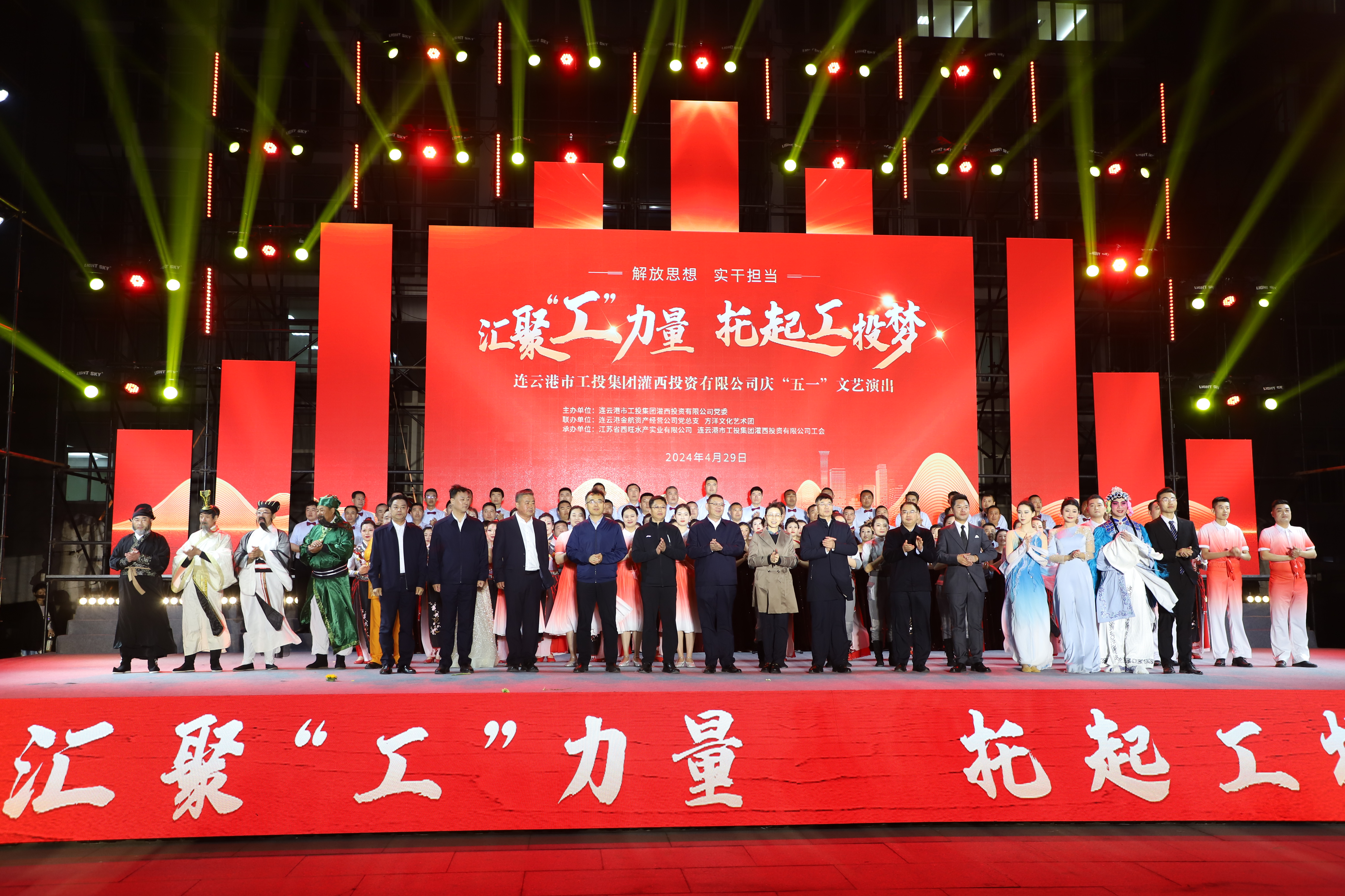 4月29日晚,灌西投資公司《匯聚“工”力量,托起工投夢(mèng)》慶“五一”文藝演出在機(jī)關(guān)大樓前廣場(chǎng)舉行。本次活動(dòng)由灌西投資公司黨委主辦,連云港金航資產(chǎn)經(jīng)營(yíng)公司黨總支、方洋文化藝術(shù)團(tuán)聯(lián)辦,旨在通過(guò)藝術(shù)的形式,營(yíng)造崇尚勞模、學(xué)習(xí)先進(jìn)、尊重勞動(dòng)的良好氛圍,豐富公司員工的文化生活,激發(fā)干事創(chuàng)業(yè)熱情。集團(tuán)公司領(lǐng)導(dǎo)張六林、戴鴻鳴、汪群及部分部門負(fù)責(zé)人,灌西、金航資產(chǎn)經(jīng)營(yíng)公司領(lǐng)導(dǎo)班子成員出席演出活動(dòng),縣臨港產(chǎn)業(yè)區(qū)管委會(huì)、華能灌云清潔能源發(fā)電責(zé)任有限公司、徐圩新區(qū)方洋集團(tuán)等有關(guān)領(lǐng)導(dǎo)受邀觀看演出。
