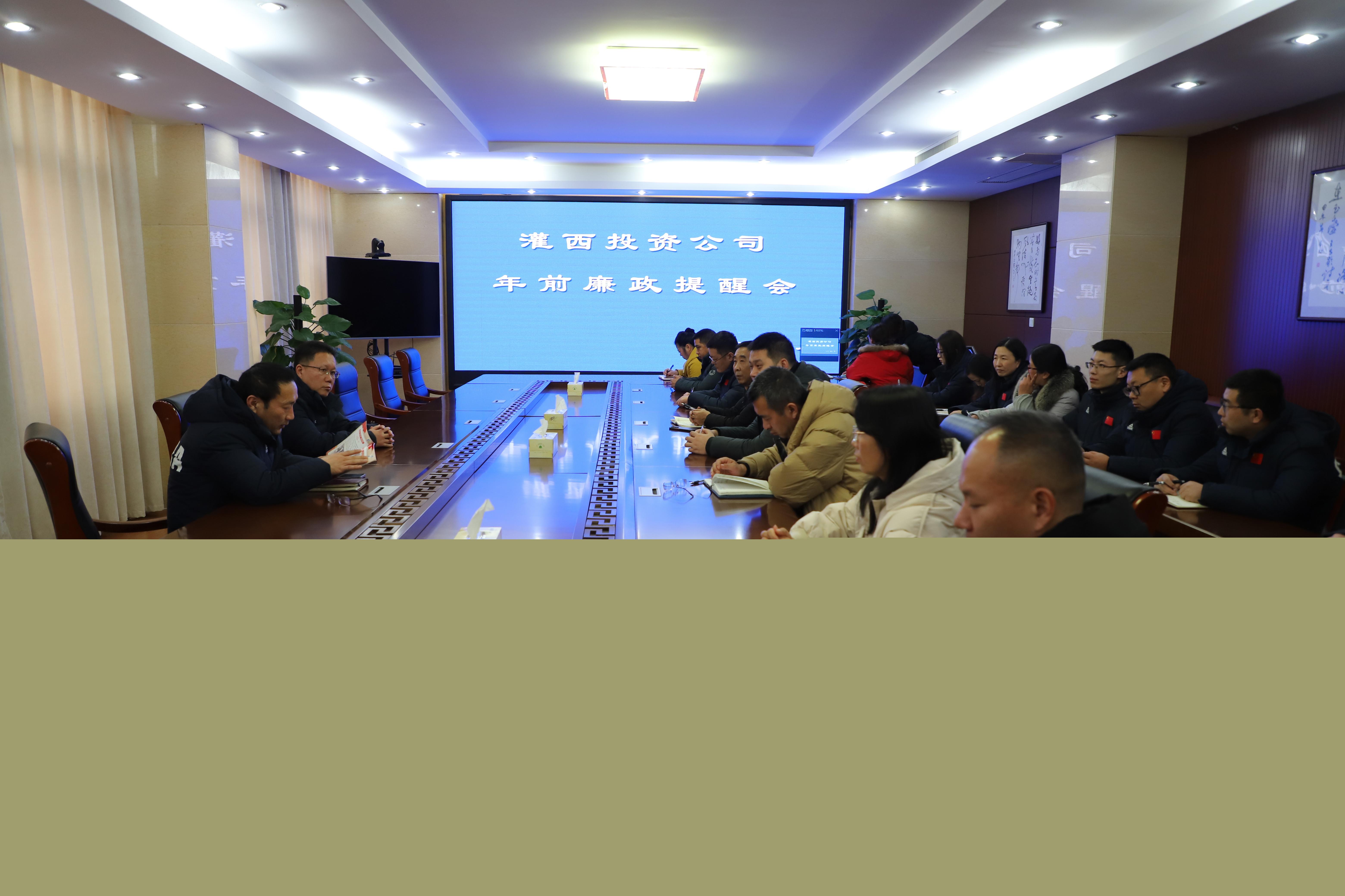 新春佳節(jié)將至,為加固中央八項(xiàng)規(guī)定堤壩,持續(xù)釋放從嚴(yán)信號,營造風(fēng)清氣正節(jié)日氛圍,2月4日,灌西投資公司紀(jì)委組織召開年前廉政提醒會(huì),灌西公司紀(jì)委書記王克平出席會(huì)議,公司紀(jì)委副書記張建保主持會(huì)議,部門負(fù)責(zé)人及關(guān)鍵崗位人員參加會(huì)議。