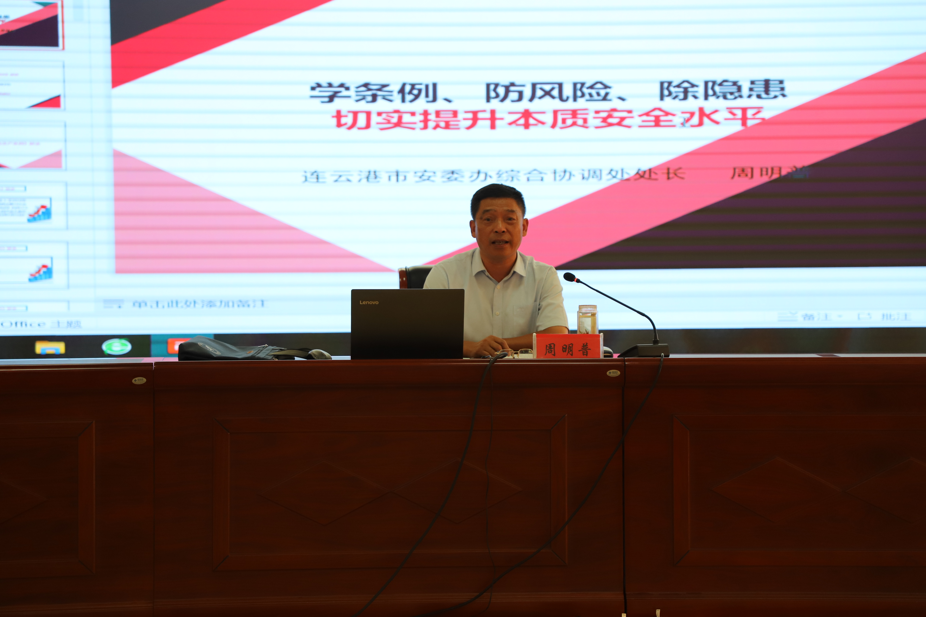 周處長對新《江蘇省安全生產(chǎn)條例》、安全生產(chǎn)重大事故隱患排查整治專項行動、突出抓好當前安全管理重點防范建議作了深入淺出的講解,同時結(jié)合我公司實際,提出很多建設(shè)性意見。