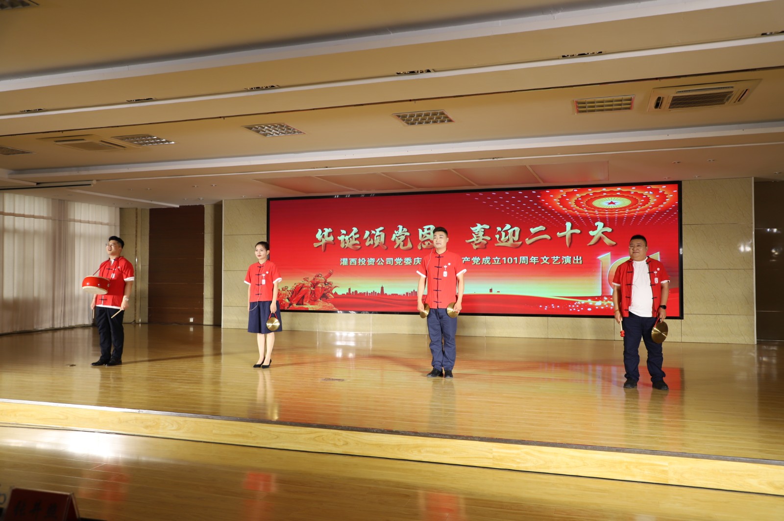 在中國共產(chǎn)黨成立101周年華誕到來之際,6月30日,灌西投資公司黨委舉辦“華誕頌黨恩喜迎二十大”主題文藝演出,以職工群眾喜聞樂見的演出形式給大家?guī)硪粓鼍始姵实囊暵犑⒀纭?/span>