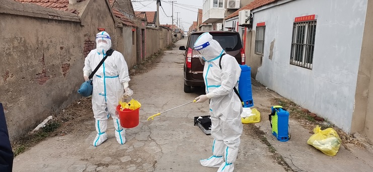 “我們中二圩社區(qū)黨支部積極響應(yīng)集團、公司黨委號召,組織黨員和社區(qū)黨員成立了聯(lián)合防控小組,我們負責(zé)管好外圍,重點對公共環(huán)境進行消毒,每天場區(qū)進出人員、車輛,我們都要逐一登記、消毒?!痹撋鐓^(qū)黨支部書記梁德好說。