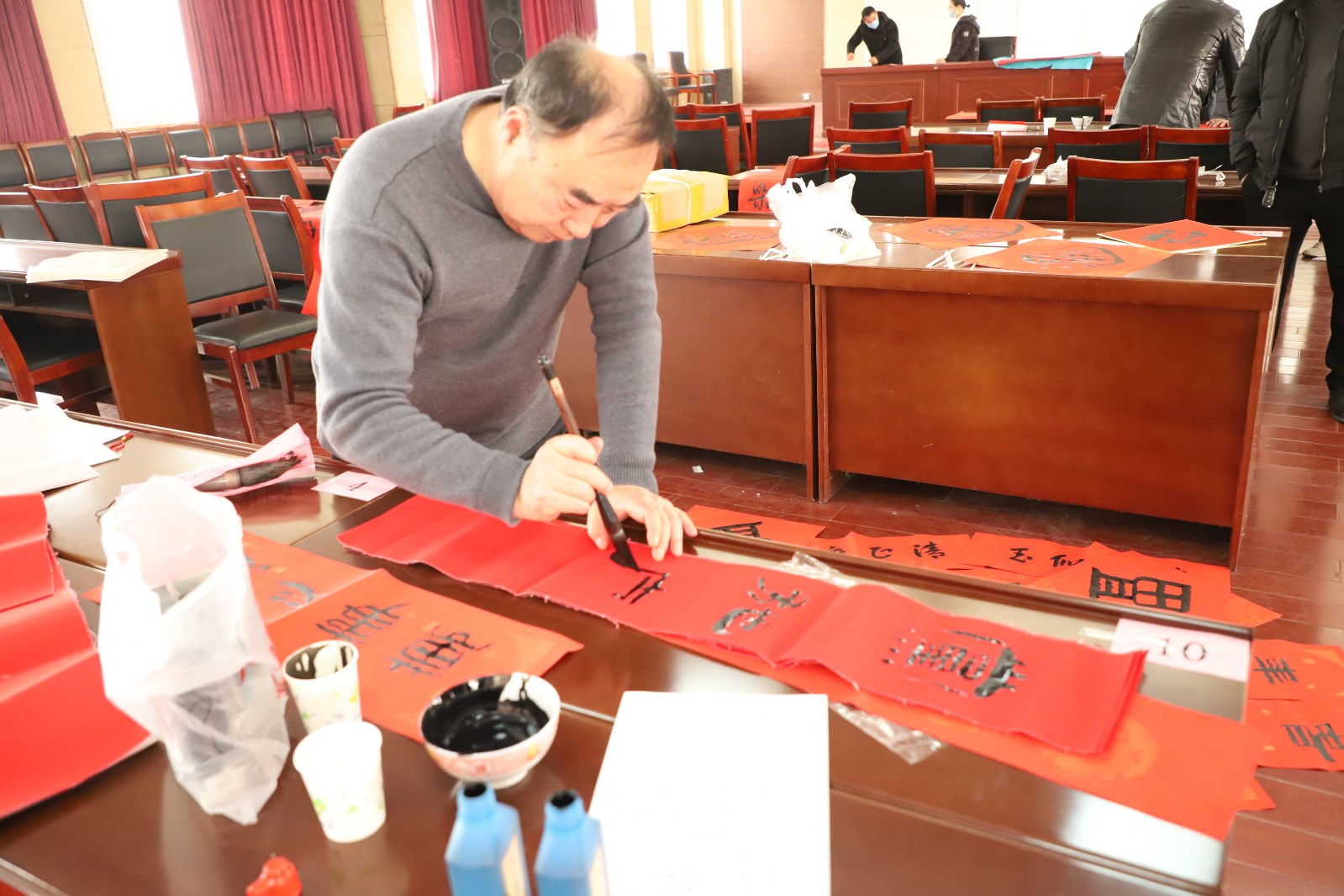 為弘揚(yáng)春節(jié)傳統(tǒng)文化,傳播清風(fēng)廉韻,讓“廉味”守住“年味”,守好“節(jié)點(diǎn)”過“廉節(jié)”,1月25日,灌西投資公司紀(jì)委在機(jī)關(guān)五樓開展有嚴(yán)有味”迎新年書寫“廉”聯(lián)活動(dòng),邀請(qǐng)到書協(xié)書法名家現(xiàn)場(chǎng)揮毫潑墨,把年俗文化、清廉文化等文化資源進(jìn)行串聯(lián),為廣大黨員干部群眾送上了一道別具“廉味”和“年味”的新春文化盛宴。