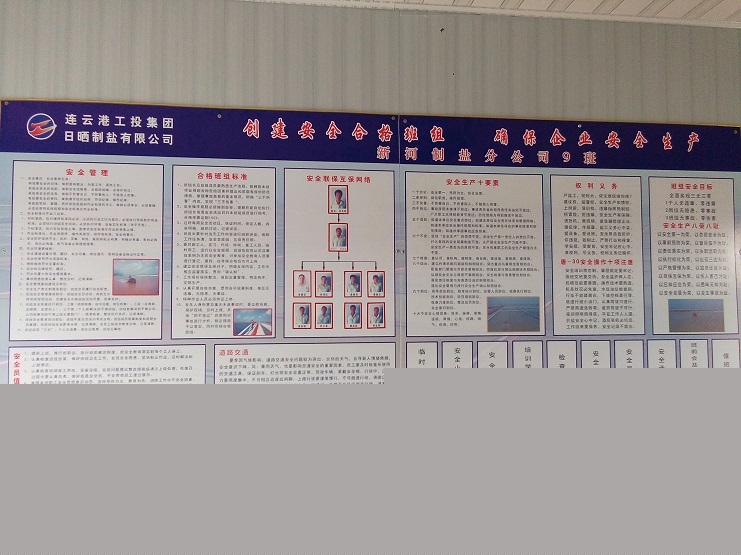 10月21日上午,連云港工投集團(tuán)安全部胥廣會總監(jiān)一行三人,在灌西投資公司運(yùn)營部李長軍部長的陪同下,對新河制鹽分公司9班安全軟硬件臺賬,班組設(shè)備安全,班組制鹽工、扒鹽工、維護(hù)工崗位職責(zé),各種操作規(guī)程等進(jìn)行初步檢查驗(yàn)收。胥總監(jiān)認(rèn)為,9班班組安全硬件設(shè)施到位,各種崗位操作規(guī)程齊全,不同崗位職責(zé)明確,是我到基層單位檢查班組安全硬件設(shè)施想像不到的好。他同時指出班組安全臺賬還需進(jìn)一步增補(bǔ)。他們一行3人,當(dāng)看到新河9班班組生產(chǎn)工具、勞保護(hù)具,值班室生活設(shè)施,上下班佩戴的頭盔,擺放整齊劃一時,滿意地說,就這樣好,有安全合格班組的模樣。(新河制鹽)
