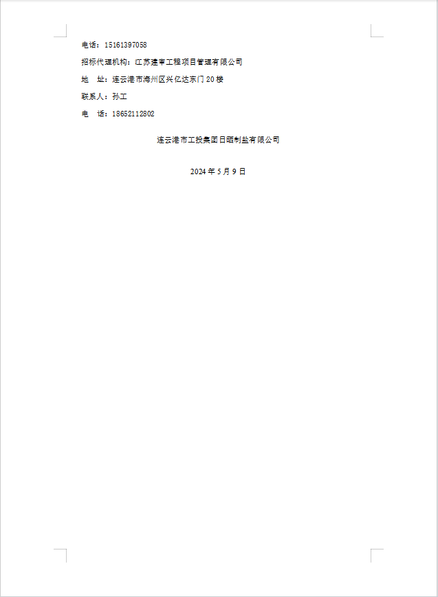 2024年連云港市工投集團日曬制鹽公司土工布采購項目招標(biāo)公告