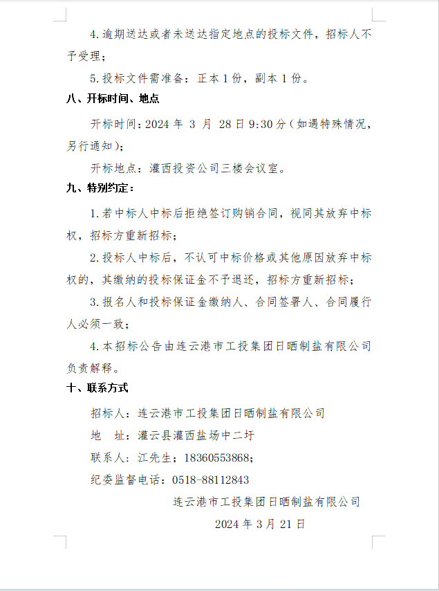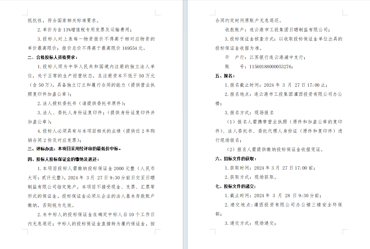 連云港市工投集團(tuán)日曬制鹽有限公司2024年度勞保用品采購(gòu)項(xiàng)目公開(kāi)招標(biāo)公告