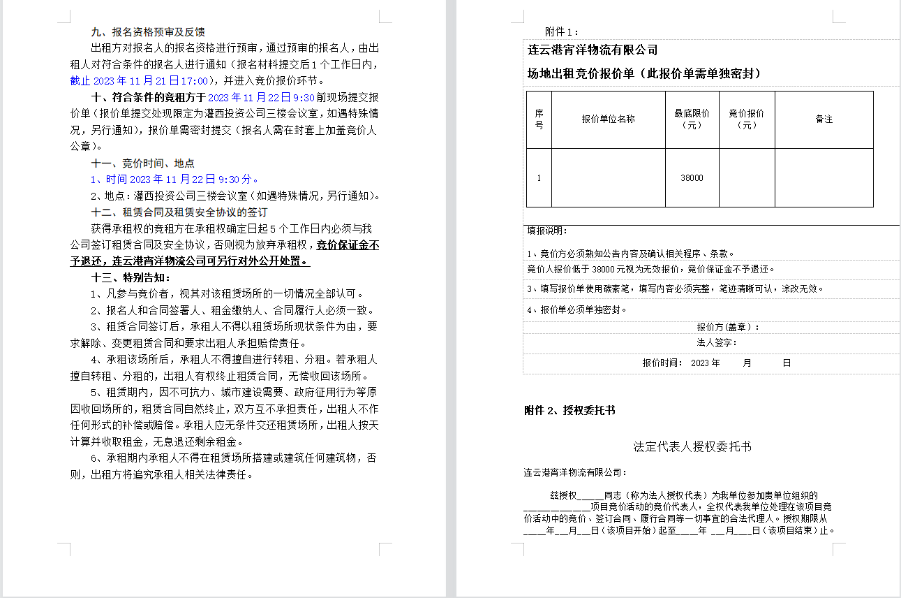 連云港宵洋物流有限公司場地對外公開招租公告