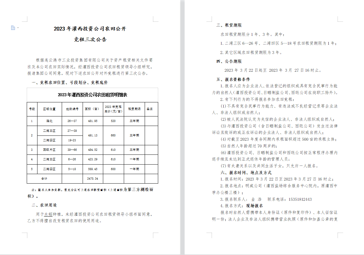 2023年灌西投資公司農(nóng)田公開(kāi)競(jìng)租三次公告