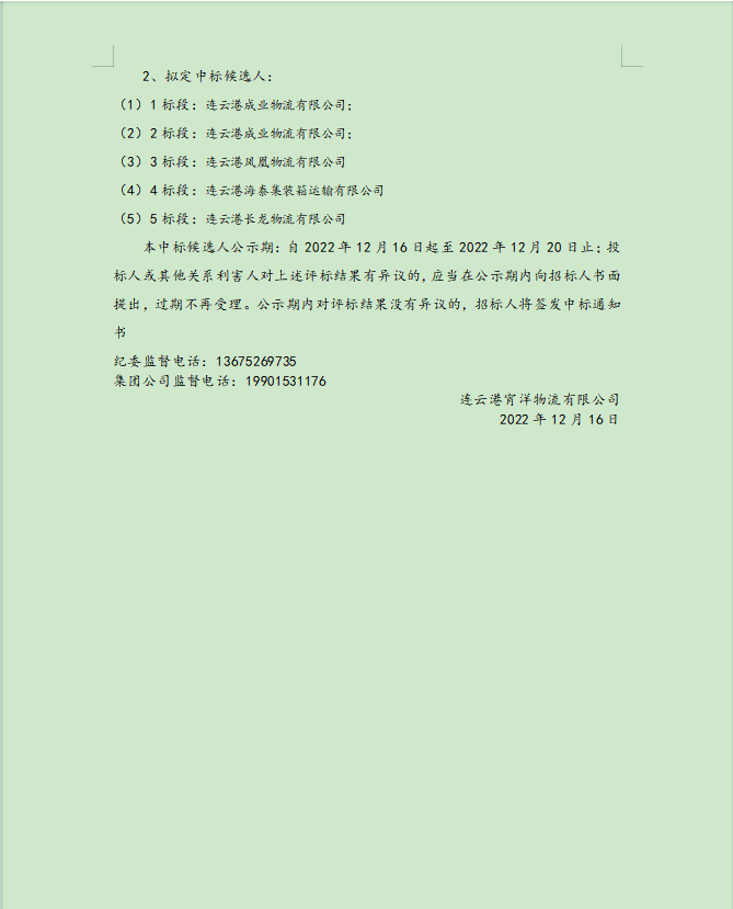 連云港宵洋物流有限公司原鹽車(chē)輛運(yùn)輸項(xiàng)目擬定候選人公示