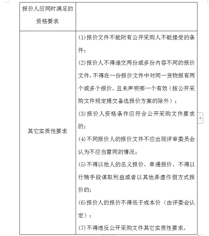2、評審委員會將根據(jù)以下標(biāo)準(zhǔn)對各報價人進行初步評審,有一項不符合要求的,作否決報價處理,不進入詳細(xì)評審。