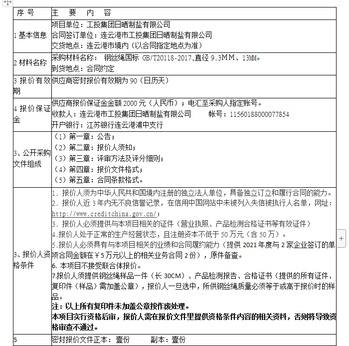 報(bào)價(jià)保證金接收人:連云港市工投集團(tuán)日曬制鹽有限公司。