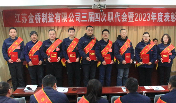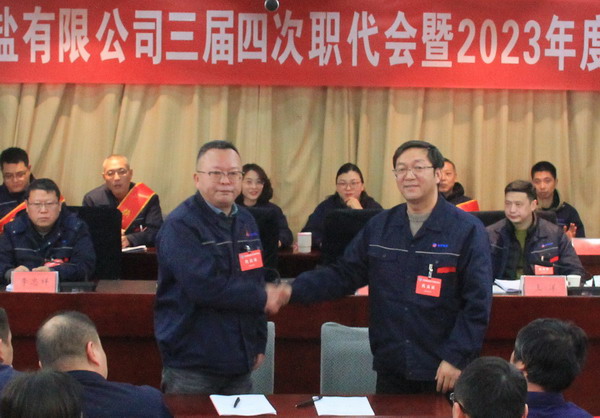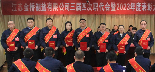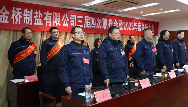 2月2日上午,金橋制鹽公司召開三屆四次職代會暨2023年度表彰大會。公司黨委書記、董事長、總經(jīng)理田磊作《工作報告》,黨委副書記、紀委書記、工會主席曹開明主持大會,公司領(lǐng)導(dǎo)班子成員及職工代表出席會議。