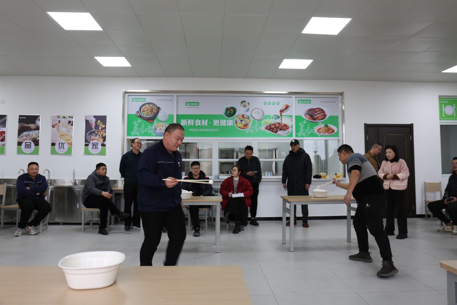 運(yùn)動(dòng)會(huì)設(shè)置“同心擊鼓”“巨人腳步”“摜蛋”等九大特色項(xiàng)目。在考驗(yàn)團(tuán)隊(duì)默契的“同心擊鼓”環(huán)節(jié),隊(duì)員們通過精準(zhǔn)的節(jié)奏把控,讓鼓面上的彩球躍動(dòng)出和諧韻律;“巨人腳步”項(xiàng)目中,八人一組綁腿前行,整齊劃一的口號(hào)彰顯出金鹽鐵軍的協(xié)作精神;“摜蛋”賽場(chǎng)智慧交鋒,選手們運(yùn)籌帷幄盡顯博弈風(fēng)采?!叭の锻痘@”“夾乒乓球”項(xiàng)目既考驗(yàn)精準(zhǔn)技藝,又充滿歡聲笑語(yǔ);“摸石頭過河”環(huán)節(jié)選手們化身"渡河先鋒",以巧妙的身姿跨越障礙;“跳繩”賽場(chǎng)繩影翻飛,“乒乓球”“臺(tái)球”對(duì)決則上演了力量與技巧的精彩碰撞。