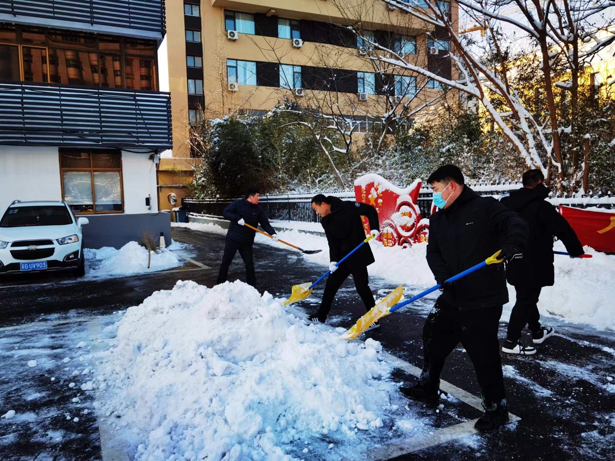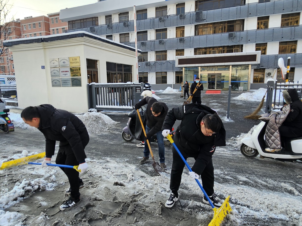 昨日,暴雪如期席卷我市,銀裝素裹間,積雪厚度也迅速增加。公司門前及院內(nèi)的厚重積雪,給日常辦公與員工的出行安全埋下了不小的隱患。面對這一情況,金融板塊的員工們迅速響應(yīng),以雪為令,迎寒而上,展開了一場掃雪除冰的集體行動。