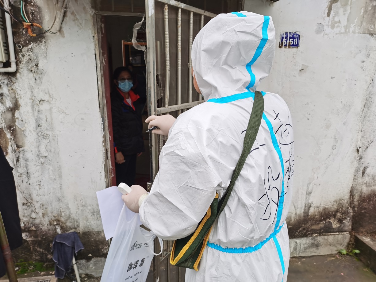 “終于完成任務(wù)了”,看著已被雨水打濕的安裝名單,工投金融板塊的三名志愿者長(zhǎng)長(zhǎng)地舒了一口氣。志愿服務(wù)隊(duì)進(jìn)駐當(dāng)天就按照社區(qū)的統(tǒng)一安排,立即開(kāi)展了門(mén)磁安裝門(mén)磁等一線工作。由于新橋社區(qū)是本輪疫情最早的“爆發(fā)點(diǎn)”,且轄區(qū)內(nèi)多為老舊小區(qū),街巷縱橫、門(mén)牌號(hào)排列混雜,群租、合租情況普遍,外來(lái)務(wù)工人員較多,給安裝工作造成了較大難度,恰巧當(dāng)天夜里下起了大雨,雨水遮擋視線,讓原本復(fù)雜的工作更添新的困難。志愿者一邊電話聯(lián)系,一邊用手電查找街邊的門(mén)牌,經(jīng)過(guò)3個(gè)半小時(shí)的摸排,終于完成了全部的安裝任務(wù)。