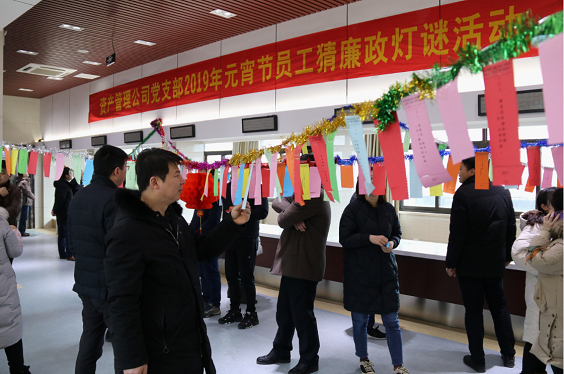 | 為弘揚(yáng)傳統(tǒng)文化,豐富員工文化生活,營(yíng)造文明和諧、健康向上的文化氛圍,讓公司員工在體驗(yàn)文化魅力的過(guò)程中度過(guò)一個(gè)溫馨、愉悅、祥和的元宵佳節(jié)。2月19日,資產(chǎn)管理公司黨支部以“樹(shù)文明新風(fēng)、倡廉潔文化”為主題,在五樓活動(dòng)室舉辦2019年元宵節(jié)猜廉政燈謎活動(dòng),大家一起開(kāi)動(dòng)腦筋,在歡度佳節(jié)的同時(shí),“觸摸”廉政文化、接受廉潔教育,感受著“廉政燈謎”帶來(lái)的一股浩然清風(fēng)。