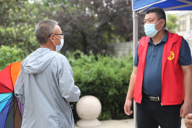 為了避免高溫中暑,天剛蒙蒙亮,黃沙坨社區(qū)核酸檢測現(xiàn)場已經(jīng)一片忙碌。最危險的地方,總有共產(chǎn)黨員的身影,在黨員們示范和帶動下,入黨積極分子同樣挺身而出。泰祥黨支部書記丁海明帶領積極分子孫振然主動受領維護秩序任務,任勞任怨,毫無怨言,檢測現(xiàn)場秩序井然有序。當大家沉靜在睡夢中時,來自鹽場衛(wèi)生服務站的黨員李傳紅和積極分子王秀麗已經(jīng)穿上防護服,等待即將前來核酸檢測的1500位普通居民。他們用行動踐行初心,用奮斗與奉獻向黨組織表達自己的一片赤誠。(青 宣)