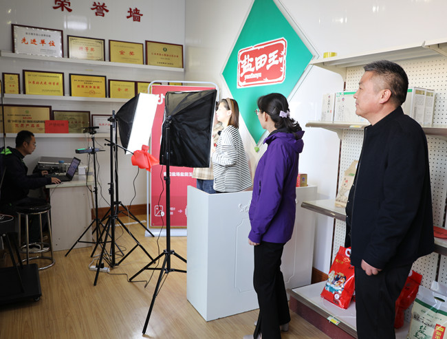 調研組先后參觀“鹽田玉”抖音帶貨直播間、“鹽田玉”生產(chǎn)加工車間、大新農場水稻收割現(xiàn)場。