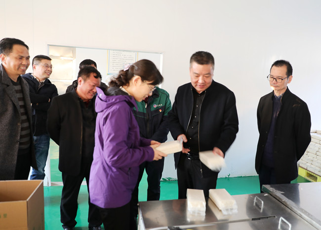 新米上市,線上線下同步火爆銷售,“鹽田玉”大米生產(chǎn)加工車間有條不紊忙碌著,流水線上的工人們,熟練的將大米裝袋、封口、堆碼整齊。青口公司史書記向汪書記一行,詳細介紹大米的生產(chǎn)、銷售、市場行情,并匯報明年新產(chǎn)品開發(fā)和產(chǎn)線延伸思路,汪書記給予充分肯定,并強調三點:一是做好大米銷售運輸同時,提高防范意識,做好疫情防控工作;二是結合線上線下資源,做好品牌營銷工作;三是深入調研,提前謀劃,做好新產(chǎn)品開發(fā)工作。