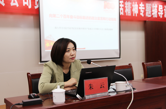 為了深入學(xué)習(xí)貫徹習(xí)近平總書記在慶祝建黨100周年大會(huì)上的重要講話精神,進(jìn)一步教育引導(dǎo)全體黨員干部學(xué)黨史、悟思想、辦實(shí)事、開新局,不斷從黨史中領(lǐng)悟前進(jìn)的智慧和力量。10月21日下午,青口公司舉辦貫徹建黨100周年講話精神專題輔導(dǎo)課,邀請(qǐng)市委黨校法政教研室主任,黨史學(xué)習(xí)教育市委宣講團(tuán)成員朱云同志作專題輔導(dǎo)課。公司領(lǐng)導(dǎo)班子成員、各單位黨政工負(fù)責(zé)人、機(jī)關(guān)全體管理人員以及基層單位在職黨員參加。會(huì)議由黨委副書記梁永主持。