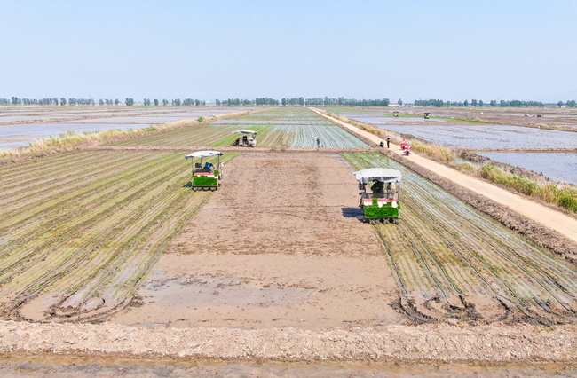 芒種時節(jié),又到一年夏種高峰時期,青口公司進(jìn)入插秧忙的季節(jié)。水稻塑盤育秧經(jīng)過近一個月的精心管理,秧苗長勢好,機器手正熟練地操作插秧機在稻田里穿梭,一撮撮青翠的秧苗被整齊有序地插在水田里,呈現(xiàn)出一幅綠色生態(tài)的耕種畫卷。