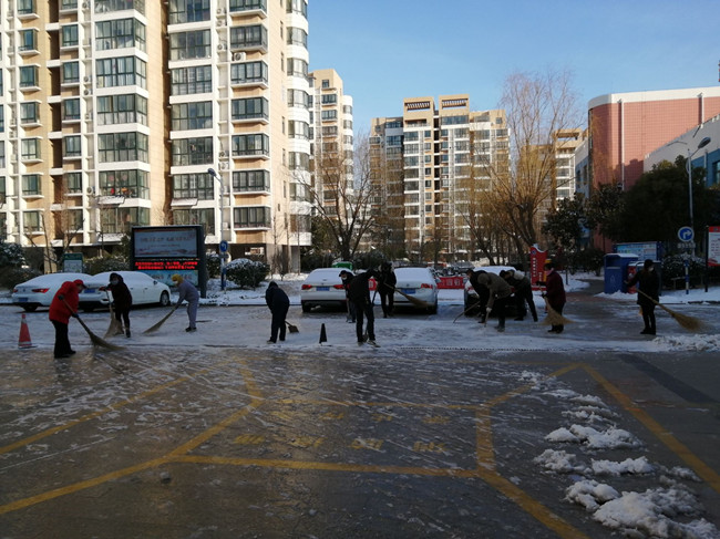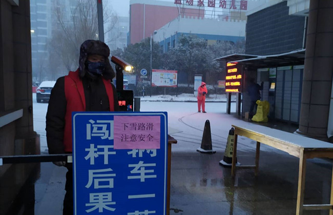 作為公司職工居住的鹽場(chǎng)家園小區(qū),按照金海社區(qū)要求,執(zhí)行封閉管理,每戶(hù)只發(fā)一個(gè)通行證,除門(mén)衛(wèi)外,管理人員全部參與輪流值班。特殊天氣時(shí),大門(mén)的看守更加嚴(yán)格與認(rèn)真,值班人員對(duì)過(guò)往的人員登記、量體溫,確保沒(méi)有問(wèn)題后才給與放行。大雪洋洋灑灑,清晨的鹽場(chǎng)家園銀裝素裹,泰祥物業(yè)的工作人員,佩戴好口罩,拿著掃帚彎著腰,揮動(dòng)手中的工具在清理積雪。雪已結(jié)成冰,但他們不畏寒冷,堅(jiān)毅有力,鏟掉冰凍。寒冷的天氣,絲毫沒(méi)有影響大家的熱情,先主路后支路,逐漸掃出一條整潔的路面,疫情面前,泰祥物業(yè)人用行動(dòng)用嚴(yán)格用責(zé)任溫暖了業(yè)主的心。