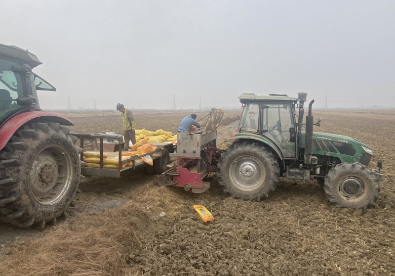 近日,大新農場積極組織小麥地開溝施肥播種作業(yè)。工作人員在農場的小麥種植區(qū)忙著翻犁、整土、施肥,有序推進小麥種植工作。(王璐)
