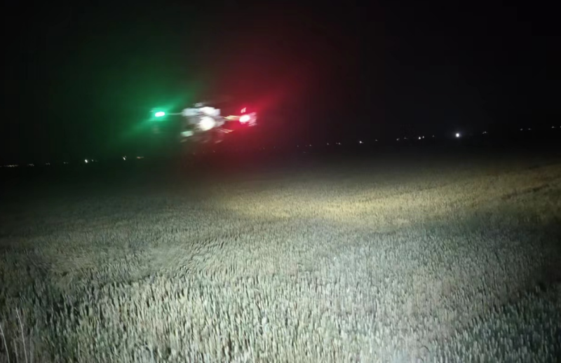 加班加點(diǎn)抓防治。晚上9點(diǎn),大新農(nóng)場(chǎng)組織2臺(tái)無(wú)人植保機(jī)在耐鹽堿小麥地實(shí)施小麥化噴施葉面肥作業(yè)。