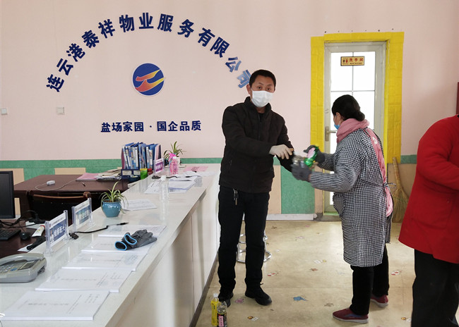 自新型冠狀病毒感染的肺炎疫情發(fā)生以來,泰祥公司所有的保潔、保安堅守崗位,兢兢業(yè)業(yè),奮戰(zhàn)在疫情防控工作的第一線。為了確保他們的身體健康并感謝他們家人的理解,在消毒液緊缺的情況下,公司率先錯時為他們發(fā)放酒精和84消毒水,并及時告知使用酒精和84消毒水的注意事項。(趙萌萌)