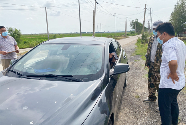 ? ? ? ?“請問你們是從哪里來?請戴好口罩,出示行程碼、健康碼。”大新農(nóng)場黨支部黨員與部分職工一道,堅(jiān)決當(dāng)好疫情防控的“守門員”,在對外來車輛登記進(jìn)入人員信息,檢查健康碼、行程碼,開展疫情防護(hù)知識宣傳。