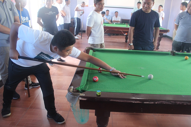 ? ? 臺(tái)球初賽采用三局兩勝淘汰賽制,抽簽決定比賽對(duì)手和上場(chǎng)順序,第一輪勝出者進(jìn)入下一場(chǎng)比賽,前四名選手進(jìn)入決賽。本次共有32名選手報(bào)名,參賽隊(duì)員雖然都是業(yè)余愛好者,但每名參賽選手態(tài)度非常認(rèn)真,臺(tái)球桌前,他們不停地走動(dòng)尋找最佳擊球點(diǎn),架桿、出桿、撞球、落袋,過程緊張而激烈,博得觀眾陣陣掌聲。經(jīng)過多輪角逐,服務(wù)中心張建軍獲本次比賽的冠軍,大新農(nóng)場(chǎng)徐振濤、候玉剛及服務(wù)中心張根林獲得二等獎(jiǎng)。