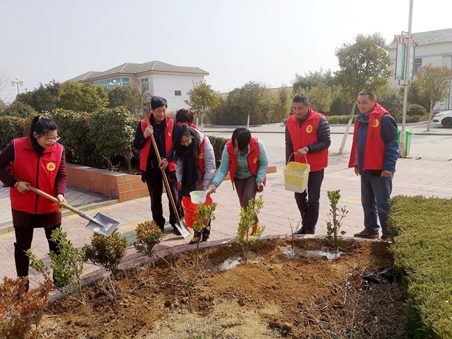 會(huì)后,服務(wù)中心與社區(qū)一行人身穿紅馬甲迅速投入到緊張的植樹活動(dòng)中,大家三五人一組,分工協(xié)作、配合默契,扶起樹苗、揮鍬鏟土、培實(shí)新土,齊心協(xié)力種下一株株樹苗,呈現(xiàn)出一派火熱的勞動(dòng)場(chǎng)景。