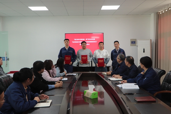 為激勵(lì)全體員工進(jìn)一步干事創(chuàng)業(yè)、奮勇?lián)?dāng),調(diào)動(dòng)廣大職工的生產(chǎn)積極性和創(chuàng)造性,10月23日下午,公司召開“我為降本增效獻(xiàn)一策”活動(dòng)總結(jié)暨“縱深推進(jìn)5S模式、提升現(xiàn)場(chǎng)管理規(guī)范化”勞動(dòng)競(jìng)賽表彰會(huì),公司領(lǐng)導(dǎo)班子全體成員、生產(chǎn)班組長參加會(huì)議。會(huì)議由公司黨支部副書記、工會(huì)主席王琪主持。