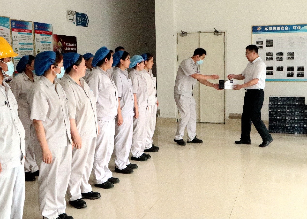 728日上午,集團(tuán)公司黨委副書記戴鴻鳴、工會主席劉承志一行到公司慰問生產(chǎn)一線員工,為生產(chǎn)一線員工送來牛奶、綠豆、白糖、大米等防暑降溫慰問品。公司董事長張斌、總經(jīng)理韓立新等領(lǐng)導(dǎo)陪同。