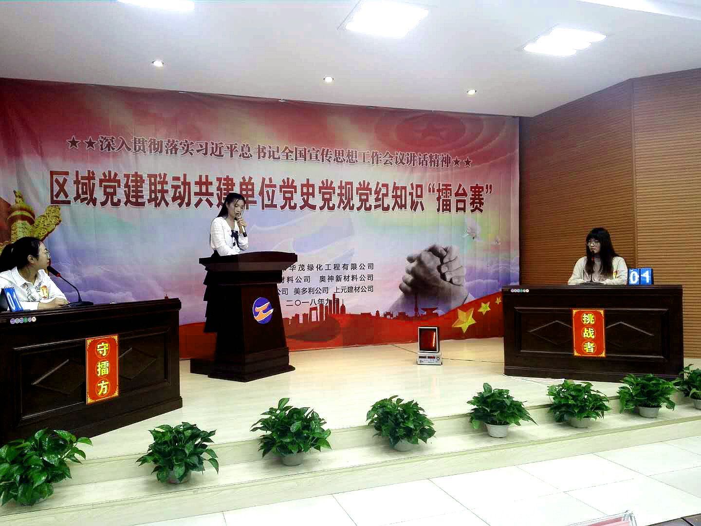 近日,華茂公司邀請(qǐng)神特公司、奧神新材料公司等5家區(qū)域黨建聯(lián)動(dòng)共建單位,進(jìn)行黨史黨規(guī)黨紀(jì)知識(shí)“擂臺(tái)賽”。我公司積極準(zhǔn)備,派出員工何曉璐、李筠涵參加比賽。本次活動(dòng)拉開了區(qū)域黨建聯(lián)動(dòng)共建的序幕,促進(jìn)了兄弟單位間的資源共享、融合互動(dòng),為下一步工作推進(jìn)打下了良好基礎(chǔ)。