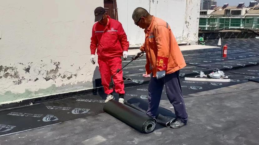 在昌圩湖大酒店樓頂防水工程施工現(xiàn)場,因屋面漏水嚴(yán)重影響酒店日常經(jīng)營。為了趕在雨季來臨之前完成全屋面防水工程,節(jié)日期間,有著“臺北防水第一人”稱號的丁祥生班長帶領(lǐng)班組成員連日奮戰(zhàn)在施工現(xiàn)場。隨著噴槍烘烤著雨虹防水卷材,一米米的鋪設(shè)前進不斷縮短著距離。