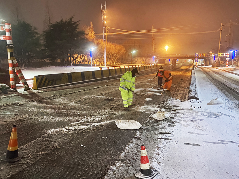 ? ? 此次掃雪除冰行動(dòng),采用人機(jī)結(jié)合方式,調(diào)派鏟雪車(chē)、裝載機(jī)等機(jī)械設(shè)備,對(duì)東方大道、黃海大道、花果山大道、242省道等主要干道人行便道、交叉路口,新海連大廈、火車(chē)站東站等重要地段的路面冰雪進(jìn)行突擊清理;對(duì)各條干道的橋面及馬山立交橋、新光路下穿立交等坡度路面鋪灑氯化鈣除雪劑融化冰雪。